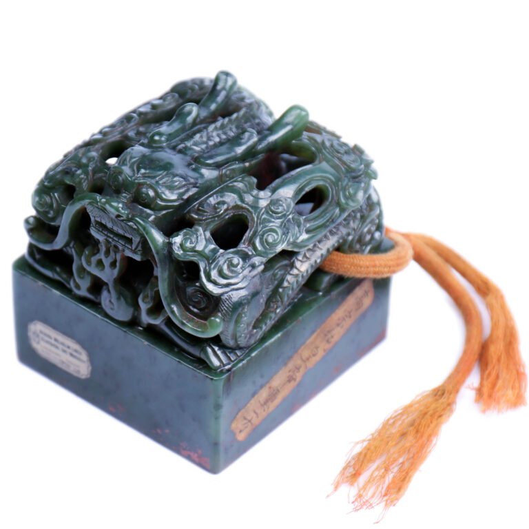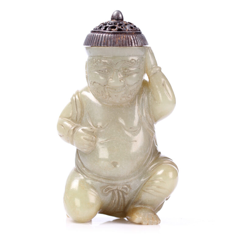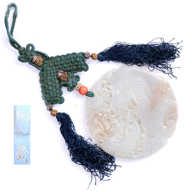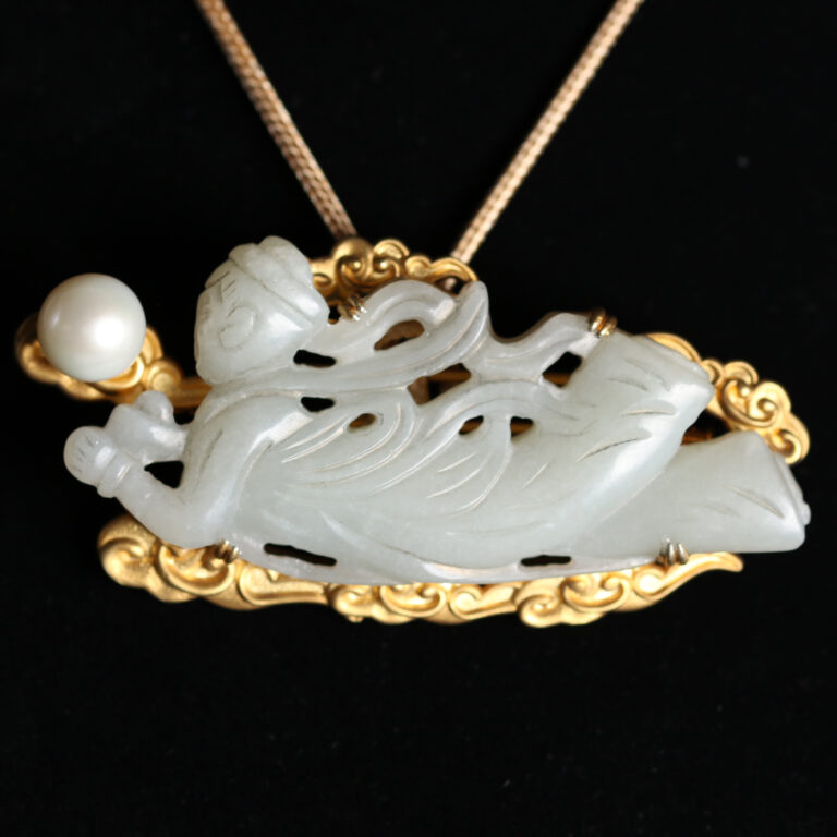 0405: Chinese Jade Pendant Inlaid With Natural Pearl