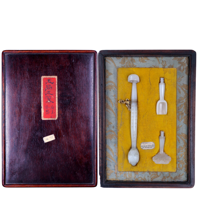 0457: A Set Of Chinese White Jade Carved Tools With Huang Hua Li Wood Box