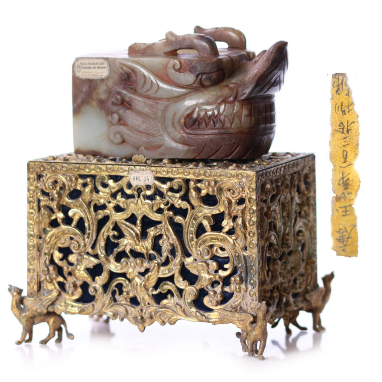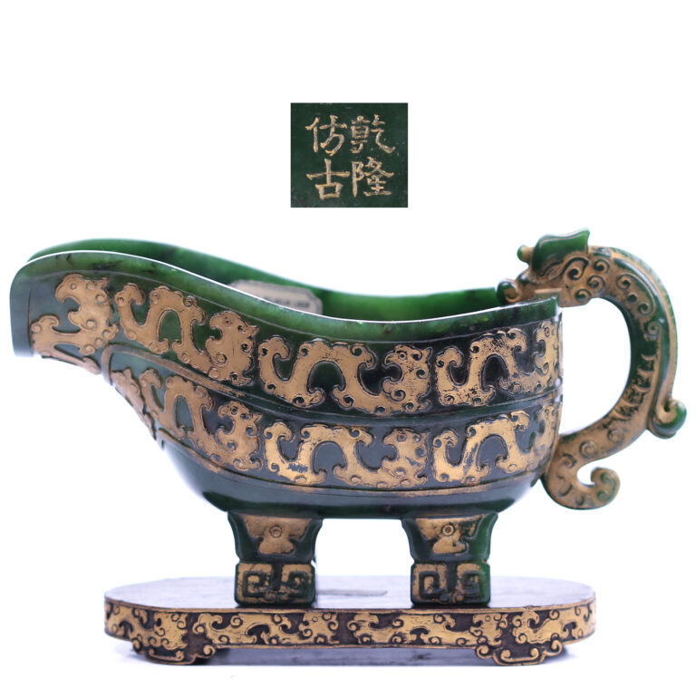 0497: Chinese Jade Carved Animal Scupture With Gilding Box