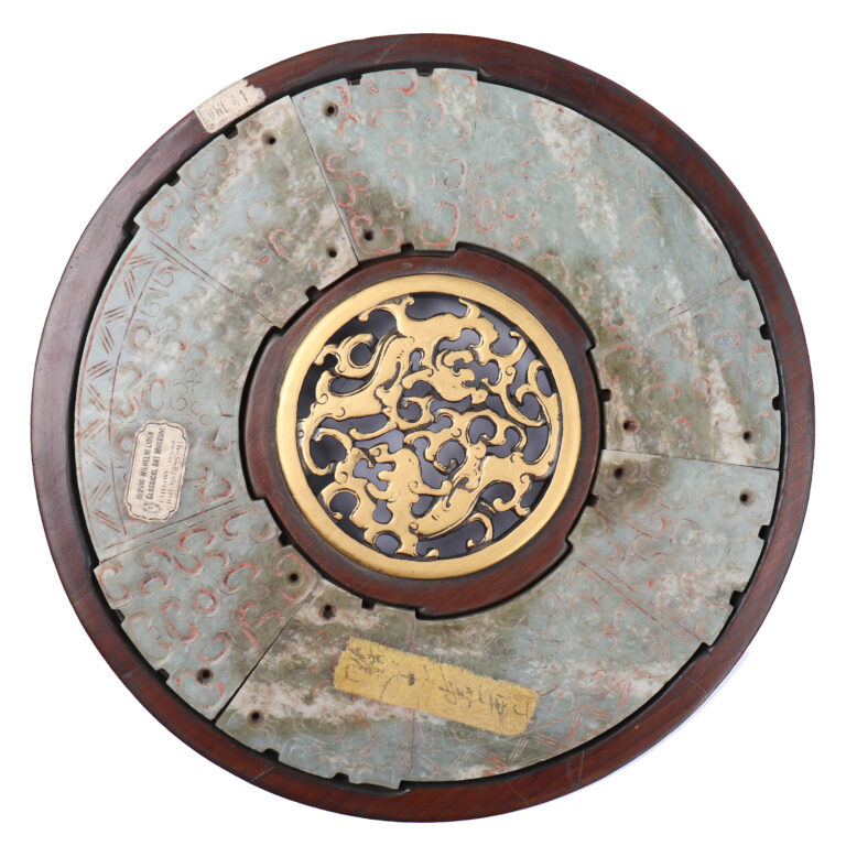0521: Chinese Jade Carved 'Bi' With Wooden Box With Partitions