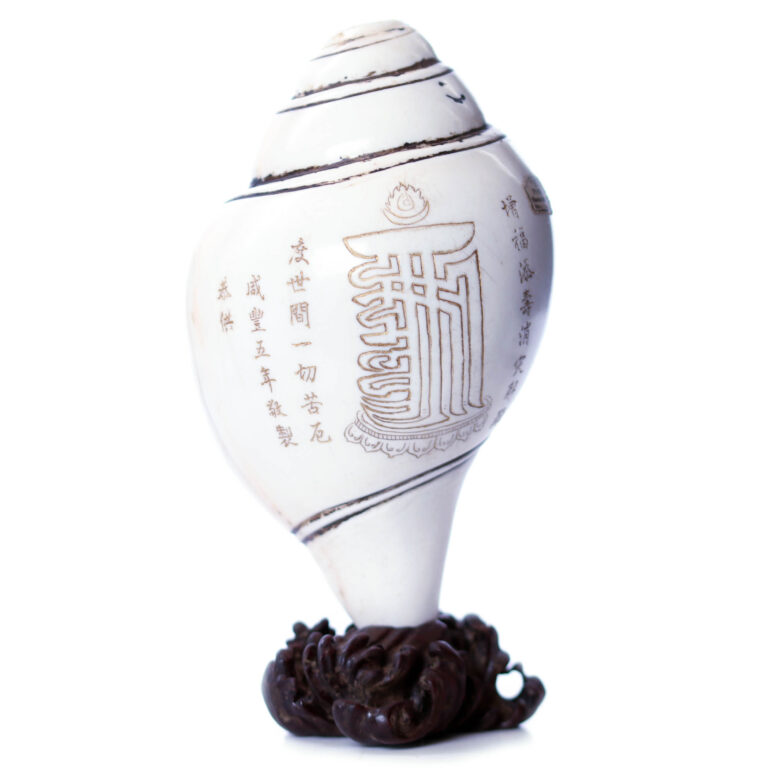 0601: A Large Conch Shell With Carved Inscriptions With Zitan Hardwood Stand